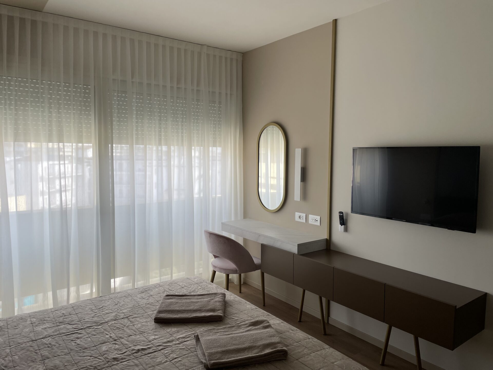 La progettazione degli impianti elettrici ha previsto soluzioni di tipo domotico, che consentono il controllo dello stato climatico della singola camera in funzione della presenza o meno delle persone al suo interno.